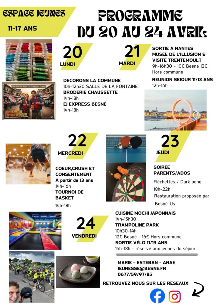 44160 BESNE 02.40.19.19.54 Mail : jeunesse@besne.fr