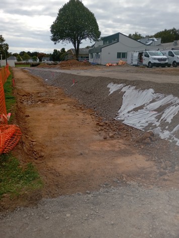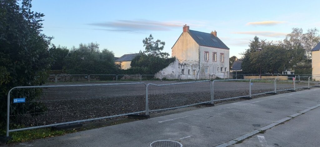 Derrière la maison de l’enfance, le grand parking est en cours de terrassement, il est actuellement encore possible de s’y garer, des panneaux vous guident sur place.